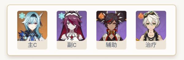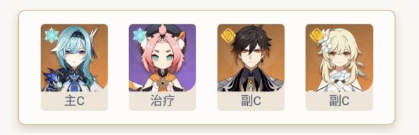 优菈搭配4命辛焱的增伤和减抗不需要超导就足以应付提瓦特大多数怪物,罗莎莉亚提供充能和暴击,猫猫进一步加强生存和充能,但并不能稳定吃到双冰。