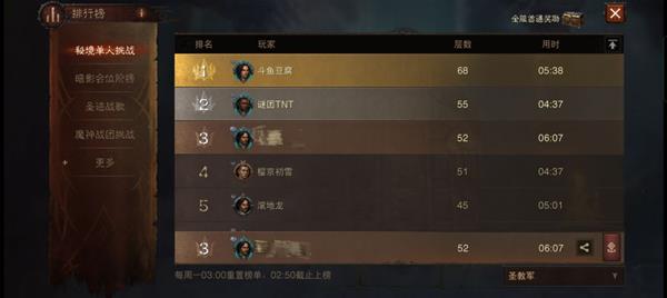 最后总结下哈,小弟不太熟练情况下用这套才过了52层大秘境,感觉还是挺值得微氪玩家玩的,当然如果你是大氪长,想知道格挡流全5星的上限能去到哪里!