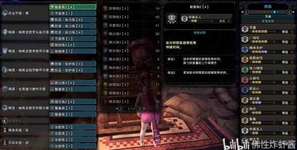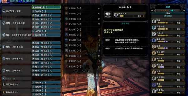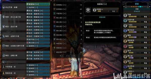 进阶套装脱离了轰龙套装,选用了绚辉龙4件套装效果,但需要打过M位的绚辉龙才可制作,新手获取难度较高。且用上了冰原珠子以及客制强化