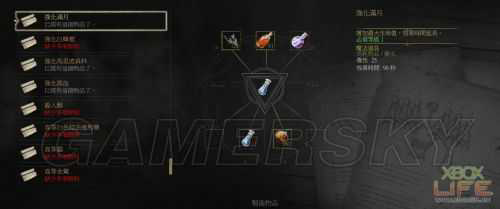 可以暂时强化能力的低毒性药水,例如强化攻击力的雷霆或者是强化活力恢复的猫头鹰等,这些药水可以短时间内让你获得高度的战斗优势,低毒性的特色让你可以自由搭配三种到四种药水同时饮用。而魔药可以利用配方来升级,升级之后所携带的数量以及持续的时间和效果都会增加,有些魔药在升级到高等之后还能在饮用时获得额外的特性,以炼金系统来说算是最常使用且效果卓越的炼金制品。