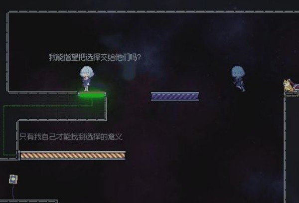 那逃避过去真的可以解决一切问题么?在之后的流程中,我们会发现或许直面过去、接纳过去才是那个更合适的方案,在第4章,我们可以把“过去”变成实体——这样它就可以开启机关和踩住踏板,这意味着我们开始接纳自己的过去;在第6章,曾经“无敌”的过去在碰到运动的踏板和围观的射线时会湮灭——这意外在我们不仅需要接纳自己的过去,还需要去保护它,去爱它。