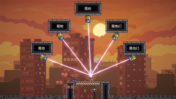 这同样是本作的“过去”在解密中的第一种使用方式:游戏中来自周围人群的冷眼旁观,会变成几秒后会发射激光射线的致命机关,但如果机关瞄准你的“过去”之后,你便不会再受到伤害,这就像是我们“自我保护”的一种遗忘:只要不去想那些难堪的过去,那就可以当作它们没有发生过。