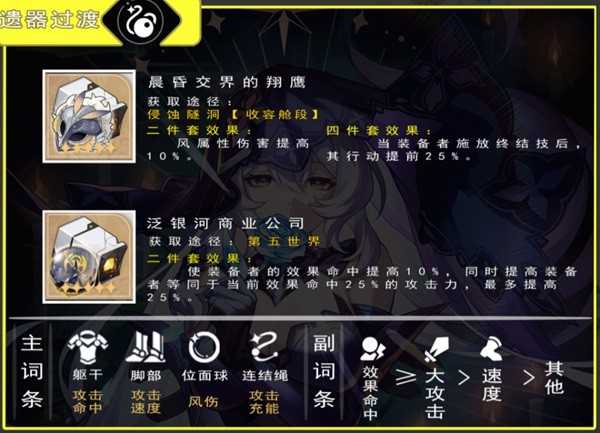 分析:2系囚加2先驱可以拥有效提高输出加成,可以给大多数的开拓者使用,泛商业银河公司可以在加效果命中的同时转攻击力(吃满要100%命中)(ps:4系囚的特效几乎吃不满,2+2也可以把2风替换进去)