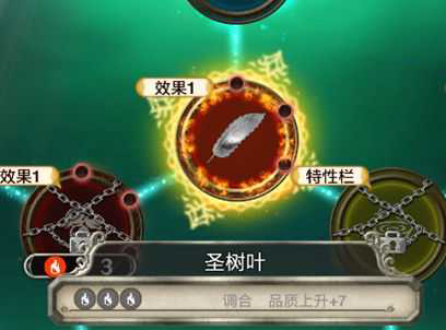 第一个是让你添加圣树叶,添加3个火属性的圣树叶可以获得调和 品质上升+7的效果。