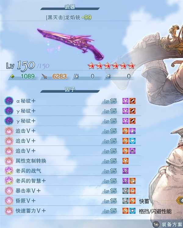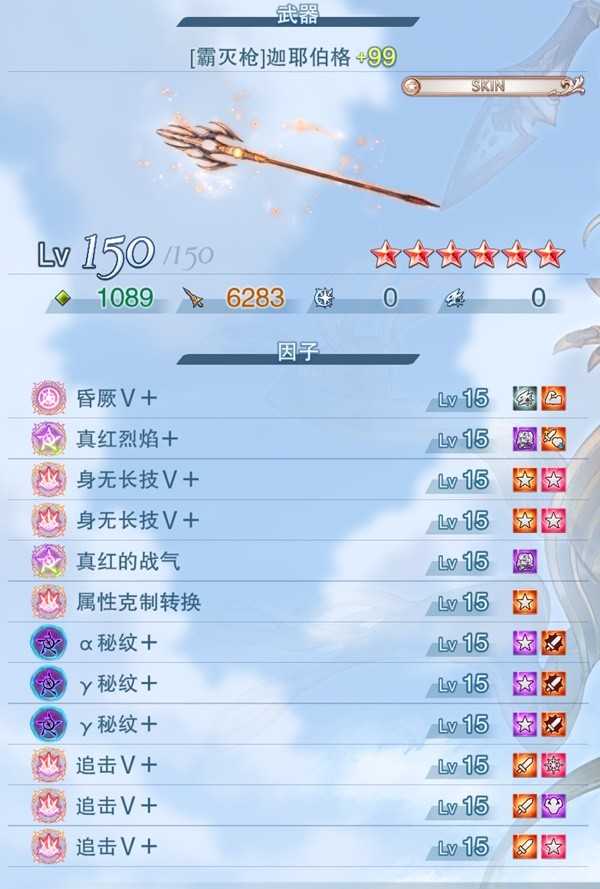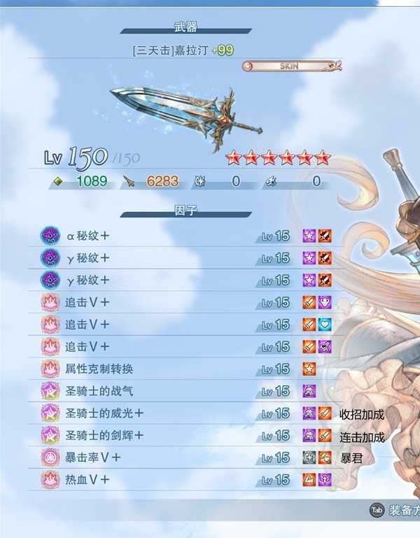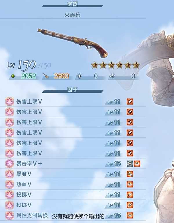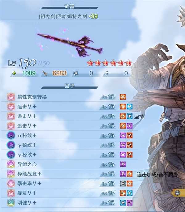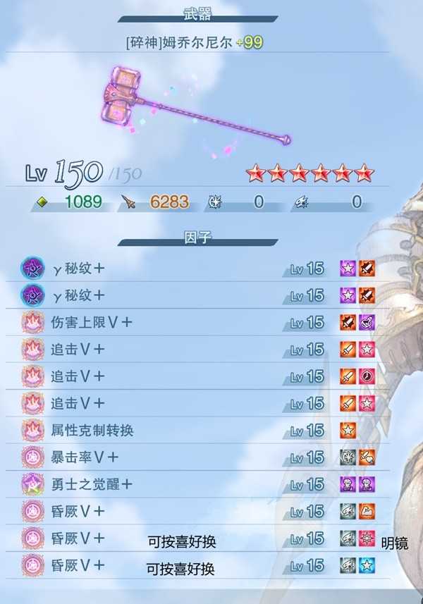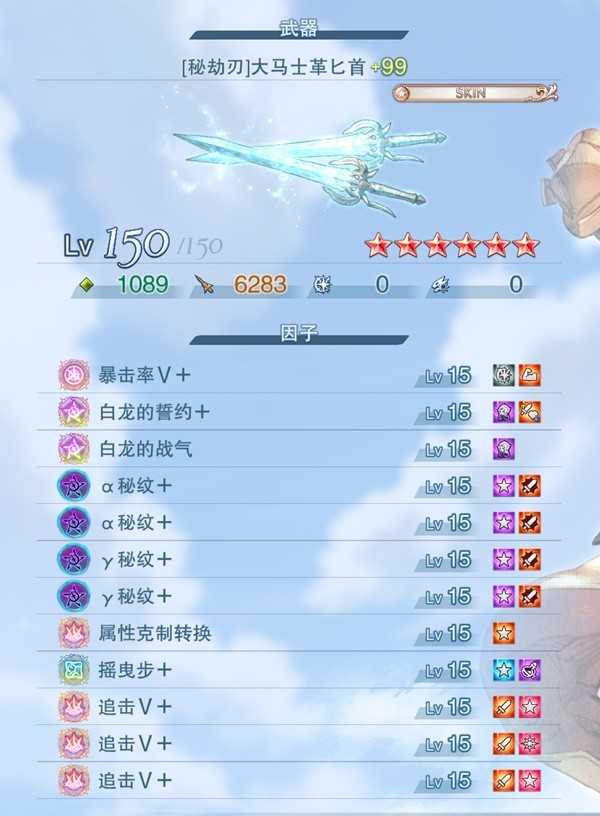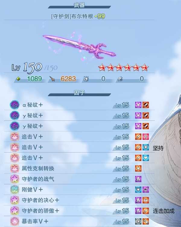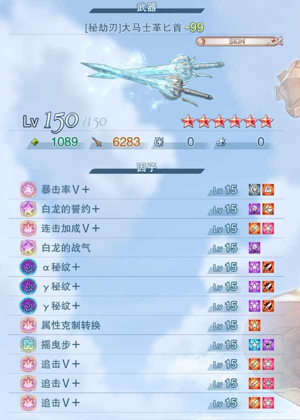 是因子搭配最多变的一个角色,这套属于带战气偏团队输出型,因为战气原因必须带明镜补奥义缺口,现在带战气奶刀都要当刀上舞来玩