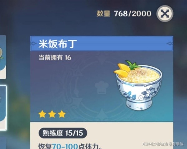 但是因为它是一个二星料理,所以我猜应该是这个新出的蔷薇奶糊(所需材料:牛奶×2,须弥蔷薇×2,糖×1)(食谱获取途径在上面)