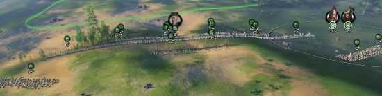 2.盾墙、龟甲阵阵线过短,敌方轻而易举就能绕你的背,你需要调动远程和步兵动态防守
