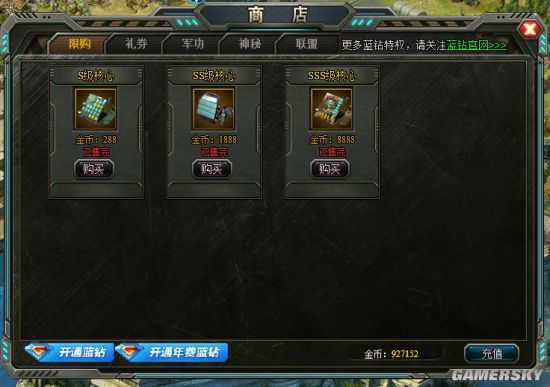 3.军功商店:出售各种神级舰船神级装备的图纸。花费军功。