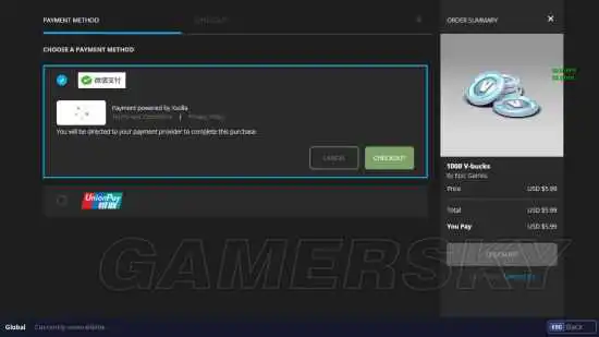 然后打开游戏界面后选择store进入,充值1000游戏币,正常情况下会出现国区支付,这个价格,5.99刀,选择支付即可,实付40元左右。