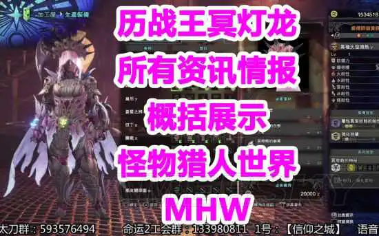 《怪物猎人世界》主机版已经配信了历战王冥灯龙活动,玩家通过参与活动可以获得异种大型γ套装防具。关于活动相关内容请看下面的《怪物猎人世界》历战王冥灯龙活动视频详解,希望对大家有用。