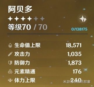 目前我阿贝多70级未突破,1800防御,黎明神剑80级,e的伤害是5800点,武器拉到90,阿贝多拉到80,圣遗物再一点好的,e伤害大概到8000左右吧,对我来说也够了,我现在的迪卢克89级人物80级黑岩,47暴击220爆伤,平时锄大地都是7-9k,沙漏的词条很烂,其他的都毕业了,阿贝多能有稳定8000我已经很满足了