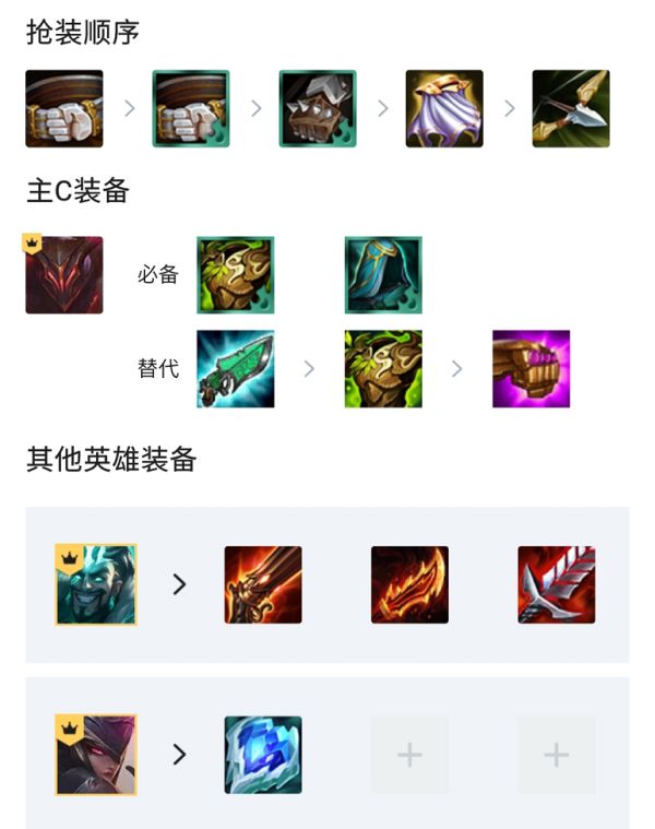 两种过渡思路都适合拿来上分,具体看来什么牌就用什么。因为这是一套阵容,前期不建议卖血去拿装备,因为7人口如果找不到2星铁男的锁血能力也不是特别的强,没有像之前那样1星铁男就能够吃分的水准,因此还是慎重。