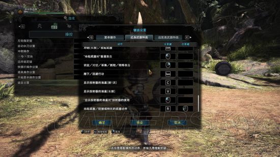 首先普通设置,就是跑动操作和吃东西了,跑动方面的设置没什么可改的,空格闪避,shift加速,还可以接受,只不过用鼠标右键代替了手柄的B,返回全靠他,很难受,总是会想要去按ESC关掉那些窗口,这个我觉得慢慢适应吧,不影响狩猎。