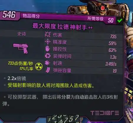 尽量选择自动追击型的泰迪尔枪,能有伽马爆发受福当然最好,没有也凑合,因为伽马爆发会把泰迪尔武器的说明顶掉,最好每一把伽马爆发受福武器都砸一下试试来。开启伽马爆发时,我的这把烈焰能分裂成3发追踪敌人,每发基本上造成的伤害在20k~70k(毕竟启动还需要狂暴和暴怒攻击来叠加伤害),但输出效率十分高,毕竟不会被筒子糊脸,也不需要瞄头。