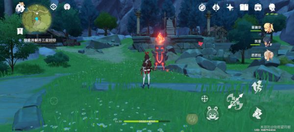 用红色圈圈给大家标记出来了,红色代表火属性,所以这里需要你用火元素的角色来触发机关。