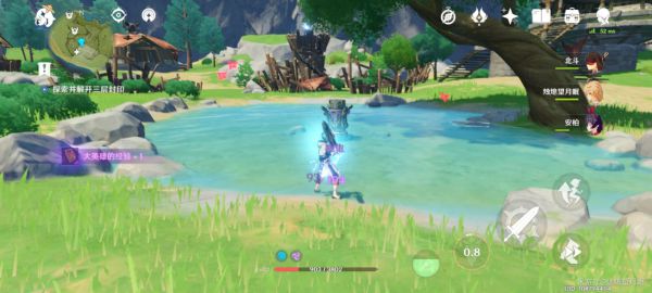 同理,用的紫色圈圈标记出来了,代表的是雷属性,需要用雷属性角色触发机关