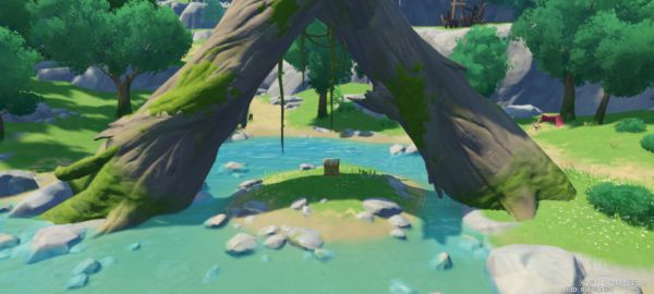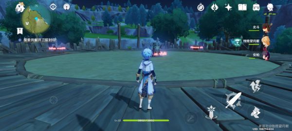 这是一个大圆盘的挑战台,需要玩家开启挑战在规定时间内打败怪物,然后用冰属性的角色触发机关。(打完后记得把周围的宝箱清理干净!)