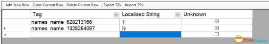 每行的第一列输入目标代码,第二列输入你想要修改的翻译名,第三列记得打钩,如图