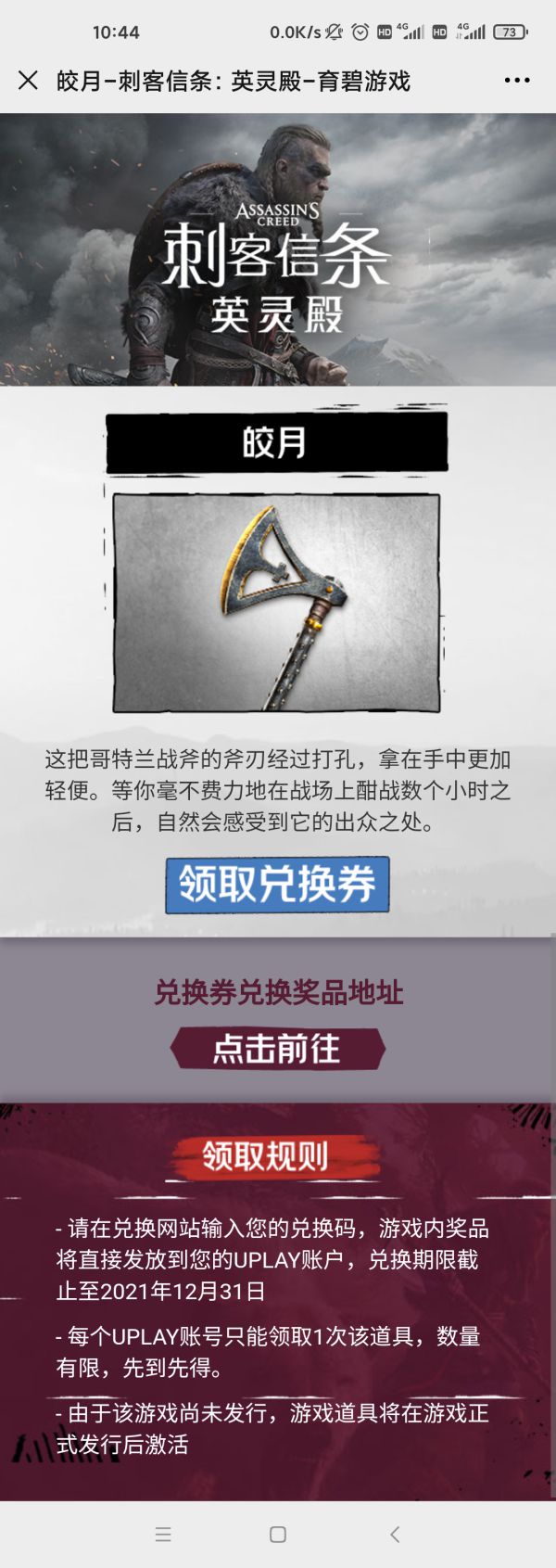 《刺客信条英灵殿》中有一把免费武器皎月可供小伙伴们兑换,那么如何兑换呢?现在为大家带来“月豆smile”分享的《刺客信条英灵殿》免费武器皎月兑换方法,希望对大家有所帮助。