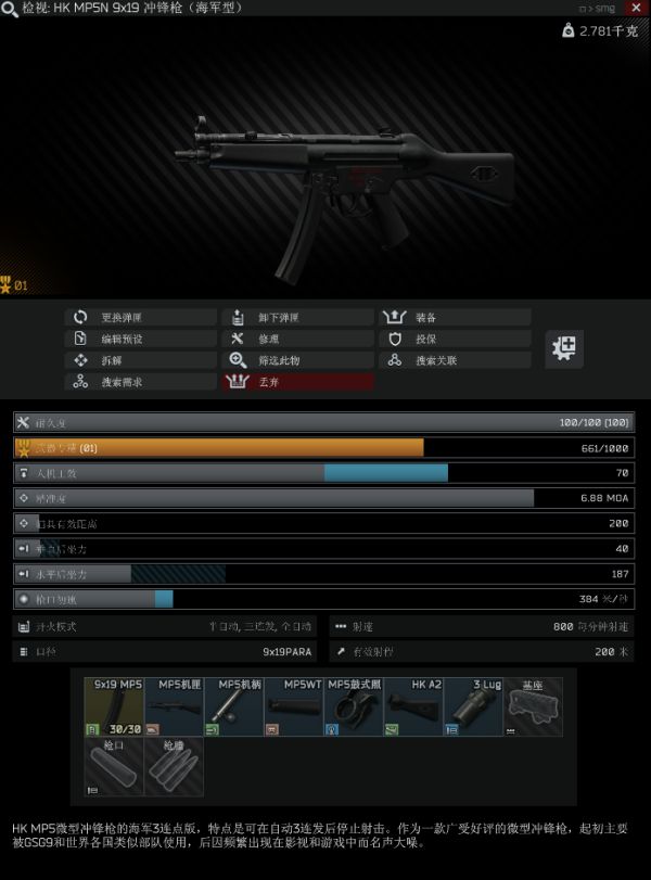 外加郑重推荐MP5我最喜欢用的武器(可以8把刀换的武器,玩匪记得带刀出来换就行),无需要改造,出门带一堆30颗子弹弹夹,子弹用PST GZH子弹,便宜好用1颗只要65卢布,新手值得使用,经济充裕可以选择RIP940卢布一颗,好贵。