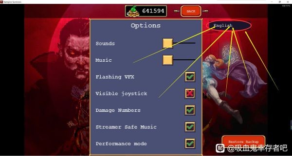 3.进入游戏无脑空格,进入到主界面,然后根据图示可以调成中文。(后面默认以中文介绍)