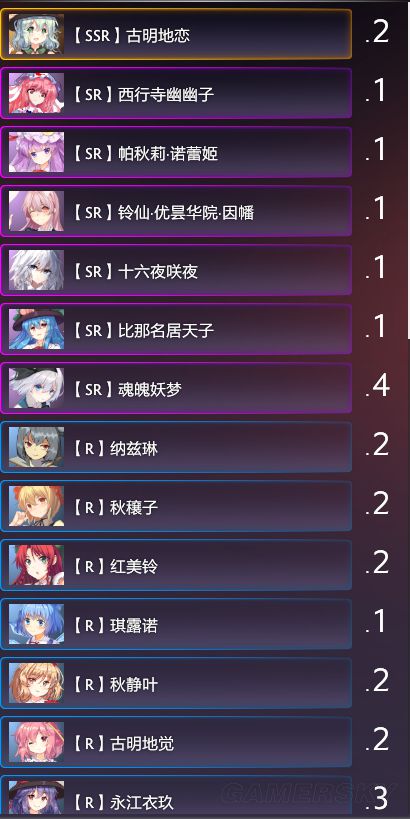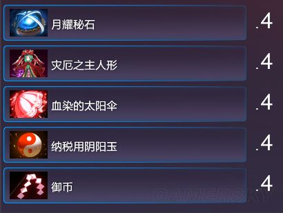 3五星满培养妖梦、一号妖梦2玉4相机、二号2玉4船桨,这两个妖梦配置应该没什么争议。三号妖梦我选择了2月弩+4船钩的配置,伤害肯定没有两个被恋恋拉的妖梦高,但从图上看也不至于丢人。