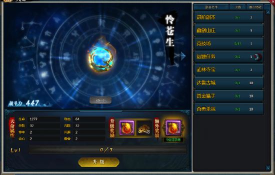 1、人物角色等级达到41级开启天命系统,完成右侧特定次数日常任务、帮派任务等,可获得天命经验,达到一定经验即可升级天命等级