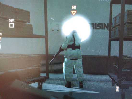 kojima标志的弹药房里,得到手电筒机枪的地方,然后用手电筒消除这个标志。(这是后来又从进补的照片)