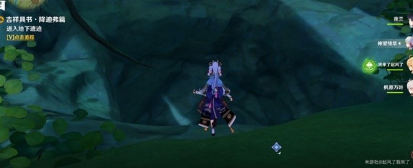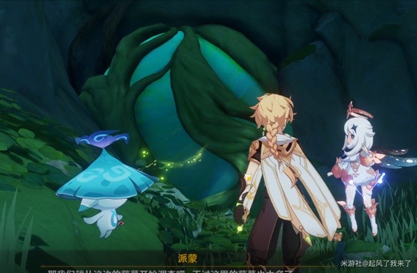 我们会在水池的中央看到一个仙灵,我们跟随仙灵,进入树根下面的洞口中,将它引导到座台上。