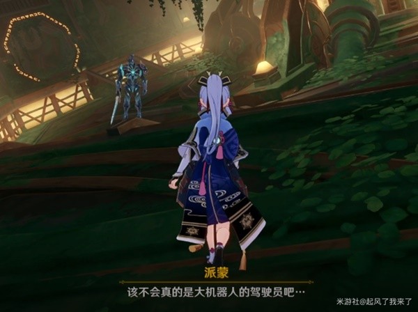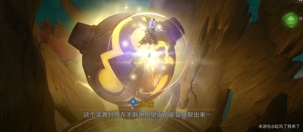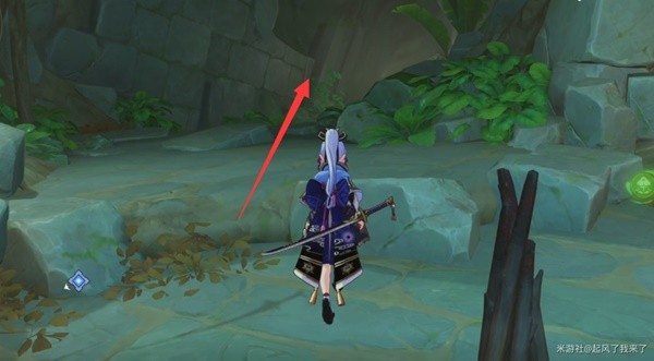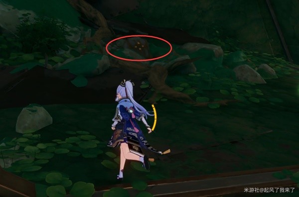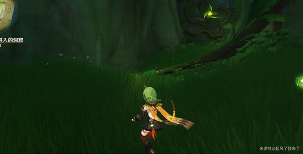跟随指引前进,途中我们要借助四叶印飞行,来到洞窟的南边,在一堆零件前调查。