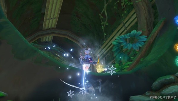 可以尽量的抬头,目光对准上面的四叶印,随后跟随四叶印飞行,会带着我们开启一个传送点。