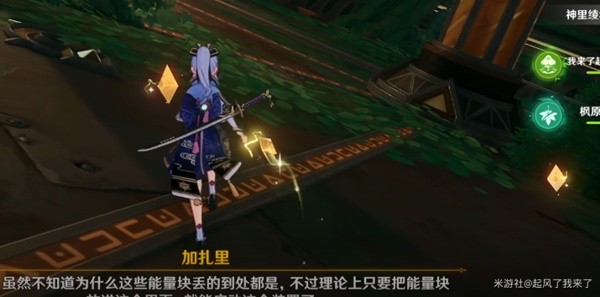 上来之后我们向着西方向走,在这里会遇到一个装置,取出能量方块,放入右侧的大门处,会得到另一块能量方块。