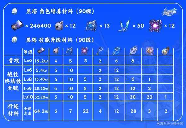那我们也事不宜迟,赶快进入「黑塔」角色攻略分析,老规矩,这里小橙子还是准备了两份,一份简易长图(附带材料表),另一份就是超详细千字攻略,小伙伴们根据自己时间自行安排。(角色简图如下)
