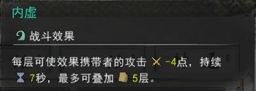 很明显,“内虚”就是一个给敌人加的debuff,没有减灵力的效果,所以根据冲虚指的描述“一些指法绝技可使敌人损失灵力”,我们需要配合“内虚”的指法绝技。