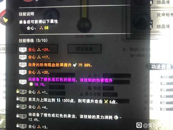 逆天改命17加攻击技能7的吸血加上心法加成最后能逼近百分之60吸血,目前已经可以越级挑战