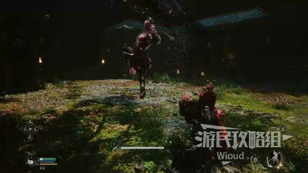 黑风大王在受到大量伤害会幻化成风球,通过突刺来攻击玩家,风球每次爆炸的瞬间便是黑风大王突刺的前摇,直接往旁边翻滚躲避,敌人连招结束会直接降落在BOSS房中间的位置,造成一次小范围AOE伤害。