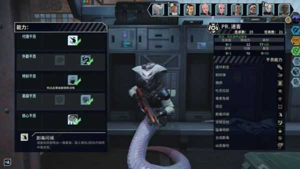 二级干员的两个选项分别是“群体资源”和“项圈”,前者的效果是每个接入神经网络的敌人再使权杖获得5命中10暴击,后者使神经网络中的敌人濒死时不死去,而是变成晕迷状态(注:本作俘虏的敌人,每一个会提供20%的情报审讯几率,在一场任务中俘获5名敌人则有100%几率获得20点情报值,多了没用)我前期全员配备麻醉弹,所以选了群体资源,其实没太大的意义,权杖的恍惚和战斗疯魔这两个技能都仅占用1次行动机会,很少会开枪。
