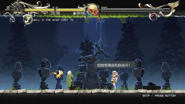 上方的两个条目是血条和蓝条,血条下方是当前使用的主武器&弓箭&魔法:血条无法自动回复,只能靠3级精灵或者购买药品补给,而蓝量则可以随时间缓慢恢复&药品补给&同属性充能、右上是敌人BOSS的血量、屏幕左侧是装备栏——上下方分别是主武器和弓箭,右侧是地图,可以看到是非常典型的恶魔城风格。