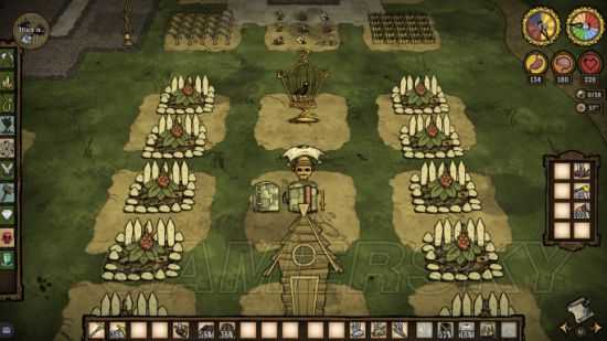 较为丰富的食物储备,作物到了冬天就不会再生长了,我们在最安逸的秋天要储备一定的食物,防止冬天满地图找吃的(桦树林的蘑菇冬天也会生长,因此只要新手区打些蜘蛛,怪物肉可以搭配蘑菇和别的食材成为肉丸,吃到死)