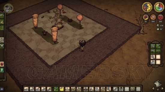 推荐新手在猪王附近建家的原因还有一个,那就是黄昏的时候猪王附近的桦树林会有很多绿蘑菇,采集以后烤了吃会回复精神值,以防很多萌新见到精神值底的时候的场景和噪音会慌。回复精神的办法还有采集花朵,解锁科技,烤蓝蘑菇(晚上出现的),烤仙人掌,待在友好生物周围等等。