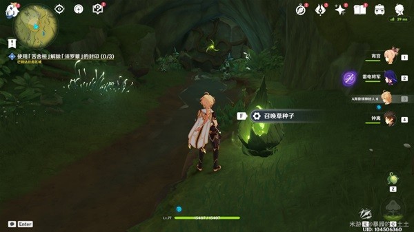 (6)然后用草元素攻击旁边的众叶觉蕊,利用四叶印快速离开洞穴