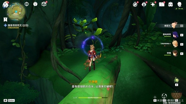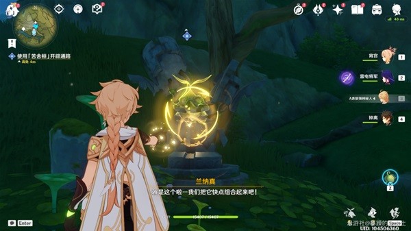 (2)装备苦舍桓,修复方碑,用草元素激活方碑,打开道路