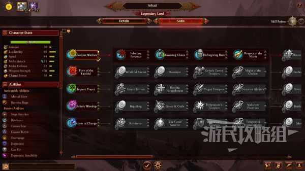 - 恐虐神耀技能:增加劫掠和洗劫收入,提升部队获得的经验值,提升人物光环领导力效果。