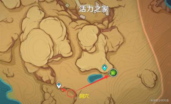 1、无相之草位于沙漠“活力之家”下方,如下图,先来到传送点,跳下去从洞口直走进去便看到。