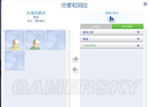 如果想要其他家庭的某个人搬过来跟你住或者你搬过去的话。进入游戏,到了这个界面,右上角的家庭管理