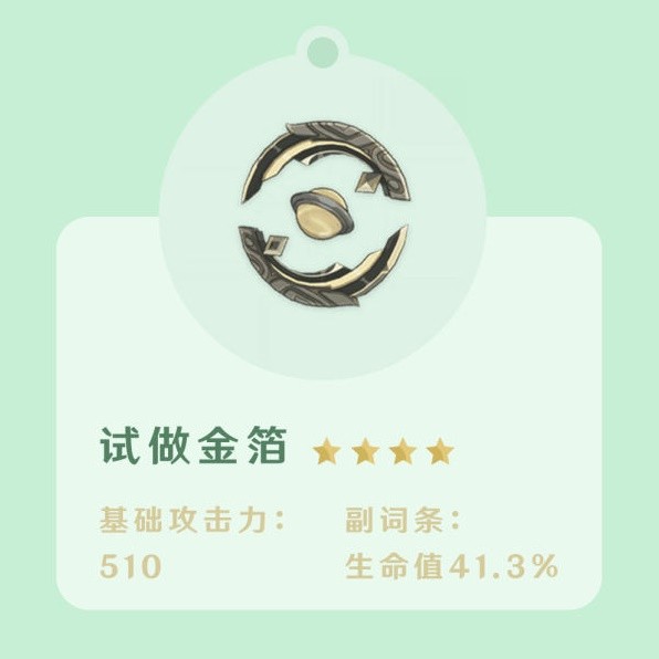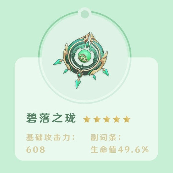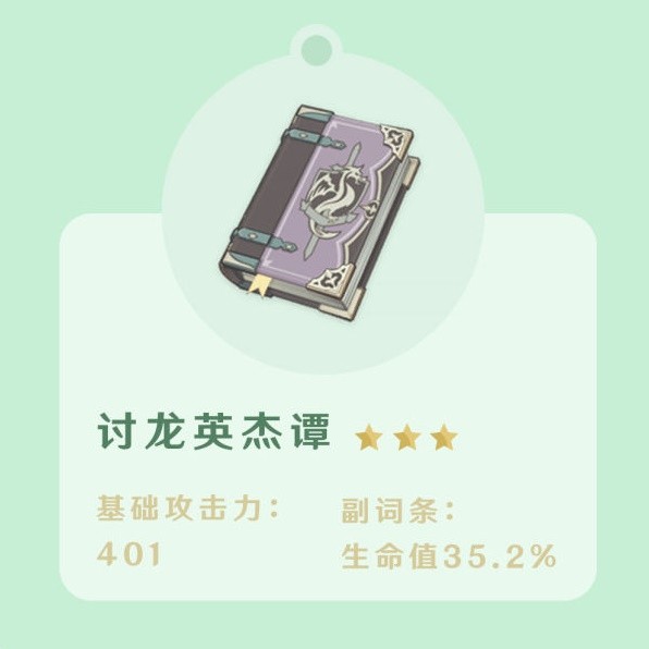 该武器提供的生命值加成是白术需求的词条,虽然仅仅只有35.2%的生命值加成,但它是一把三星武器,造价极为低廉。而武器特效提供的大量攻击加成也适配攻击力收益的角色或者激化队。