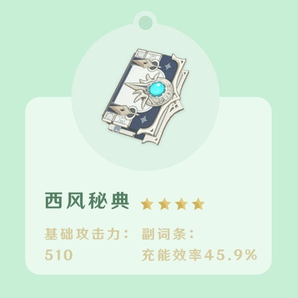 一把前期就能获取的锻造武器,提供了白术所需的生命值和充能,元素充能方面仅仅比专武少提供了9点能量,说是白术小专武也不为过。