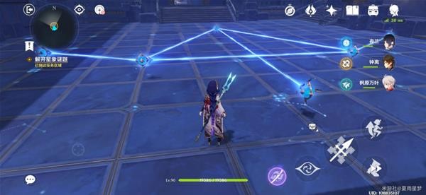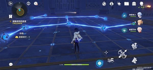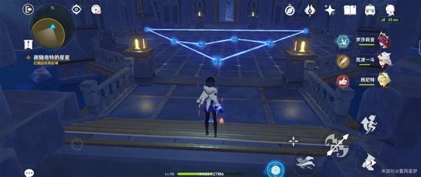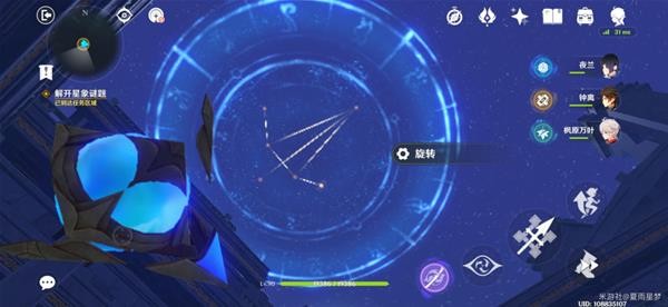 我们来到解谜的位置,能看到一个星座图案,只需要利用地上的机关连接成对应的图案即可完成解谜。地上的机关可以调整转向,普攻就可以开启和关闭激光。