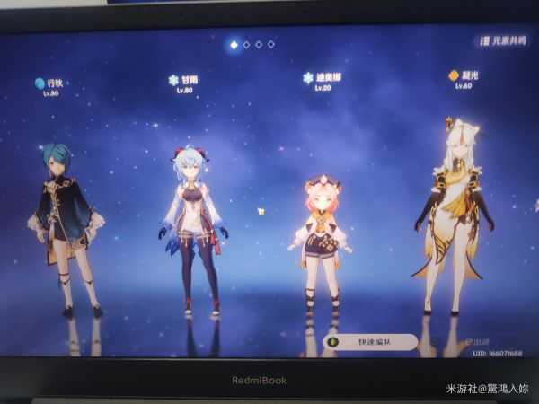 阵容搭配,甘雨+迪奥娜+行秋+凝光。