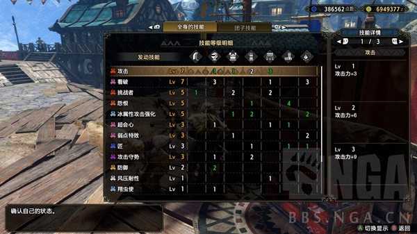 4.攻击守势:大剑的gp是可以触发的,触发后收益极高,但触发要求只有0.35s,比较苛刻,越追求极限打的越熟练收益越高,日常联机收益就一般了,和上面集中正好相反,技能吃紧的话一般是集中守势二选一,看个人需求吧。